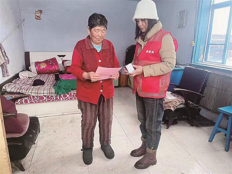 ③呼玛县调查员入户发放人口抽样调查相关资料。