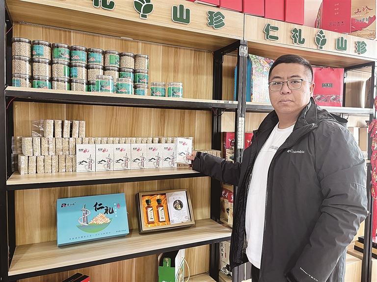 张晓禹介绍自家销售的山特产品。(图片由受访者提供)