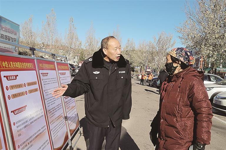 工作人员向居民普及法律知识。 刘丹摄