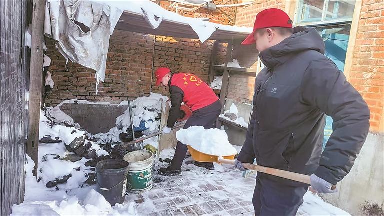 林场志愿者为困难职工家庭清理院落。
