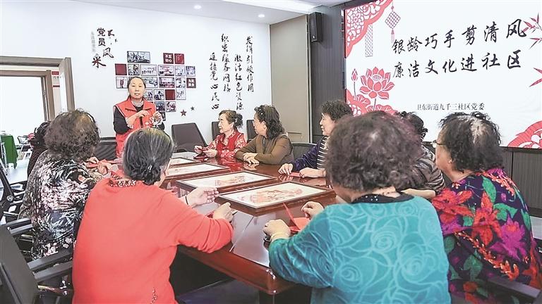 九千三社区党委将剪纸艺术融入廉洁教育,以剪纸为媒介,传递清廉文化。